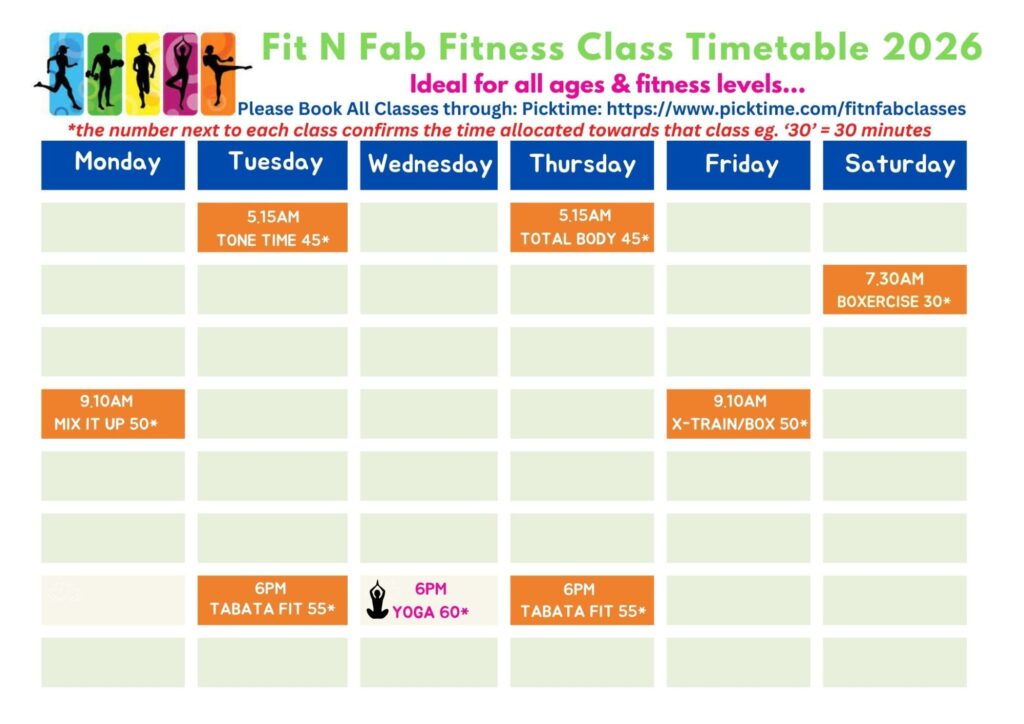 Local exercise classes timetable